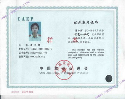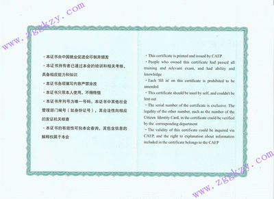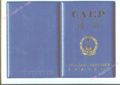 证书背面注:从2009年12月1日起,由中华人民共和国人力资源和社会保障部颁发的证书已更新改版,以下是更新后的证书样本 证书封面